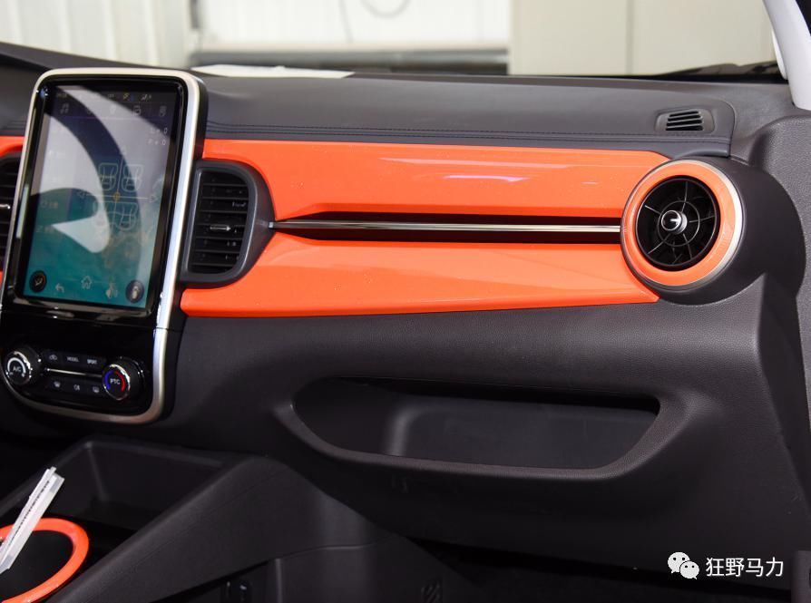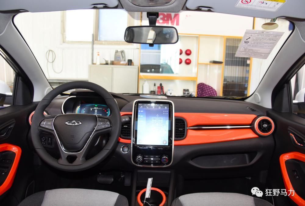 内饰方面,奇瑞eQ1采用了黑橙撞色的设计风格,搭配三辐式多功能方向盘和中控液晶多媒体屏,赋予汽车科技感。虽然内饰的整体做工看起来有点廉价,但这样的组合并不会让人太在意它的廉价。而且座椅感觉很舒服,坐久了也不会觉得累。作为这个价格的电动汽车,这是非常了不起的。